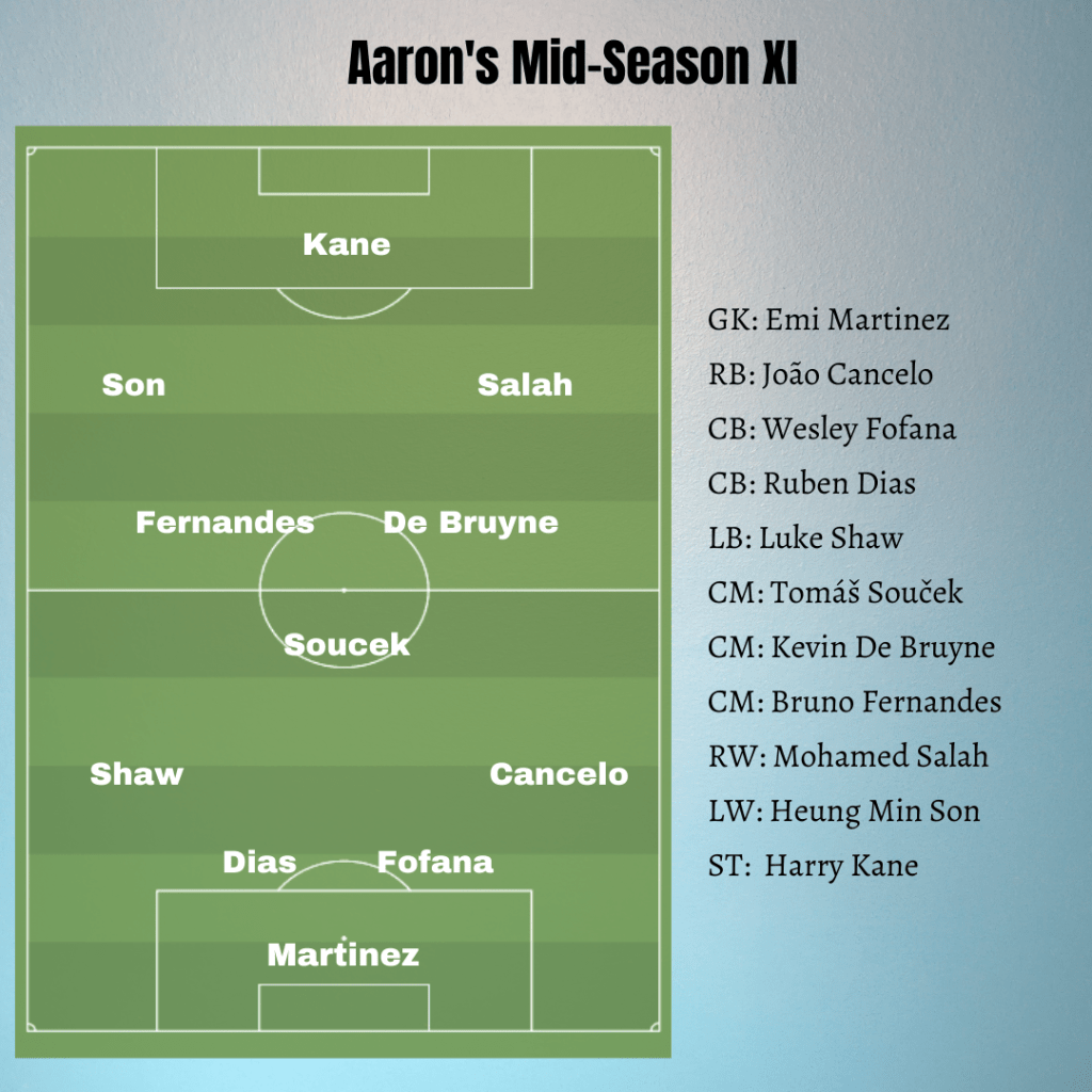 Midfield: My choice of attacking midfielders was easy. Although it’s hard to leave out someone like James Maddison or even Paul Pogba with the way he’s currently playing, Bruno Fernandes and Kevin De Bruyne were guaranteed to have a place. Those two playing together is a truly mouthwatering prospect.